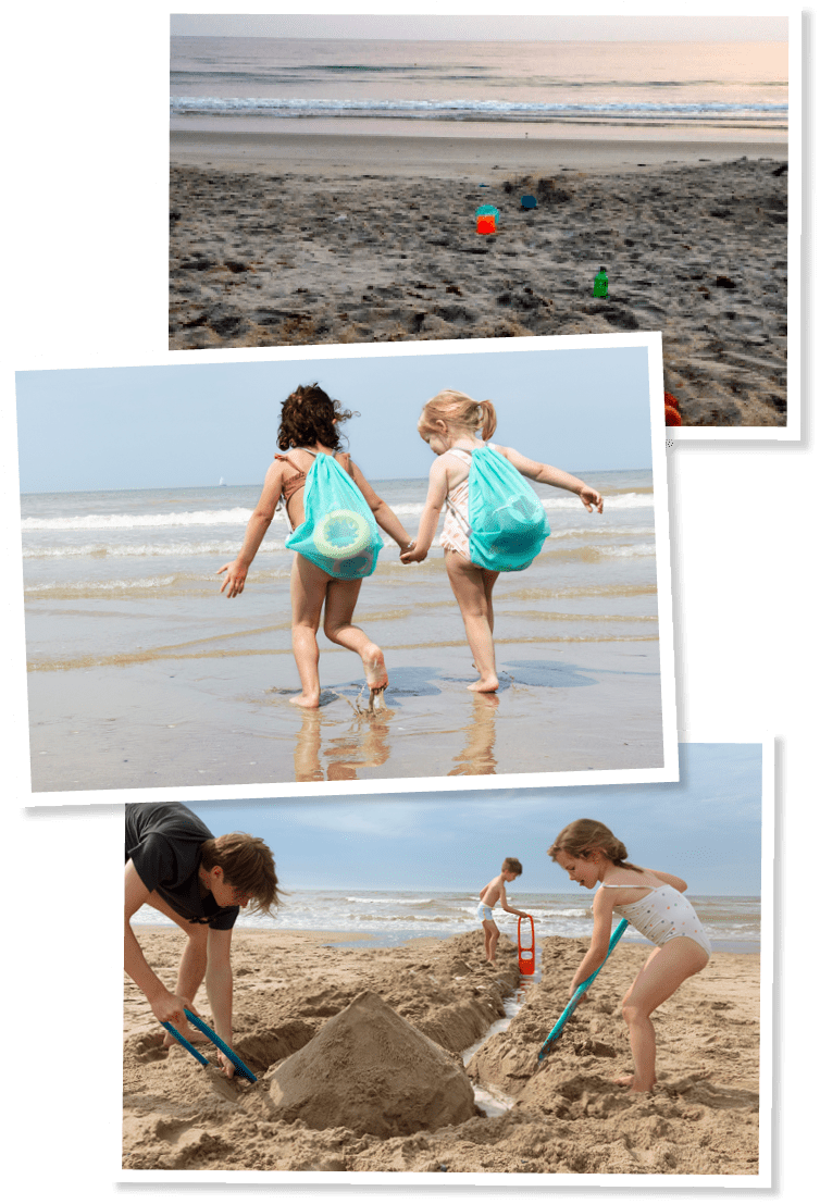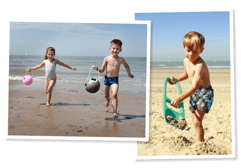 Sostenibilità a un livello superiore!Durante le loro vacanze nel 2012, hanno notato che i giocattoli da spiaggia esistenti non erano sostenibili e si sono immediatamente rotti. I prodotti non avevano alcun valore emotivo perché di solito non raggiungevano la fine della giornata e si rompevano immediatamente. La maniglia del secchio si staccò quando i loro bambini la riempirono d’acqua, la loro pala si spezzò in due quando ne scavarono un pozzo. Alla fine della giornata, la spiaggia era piena di giocattoli rotti.